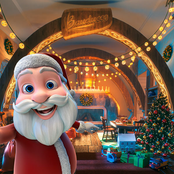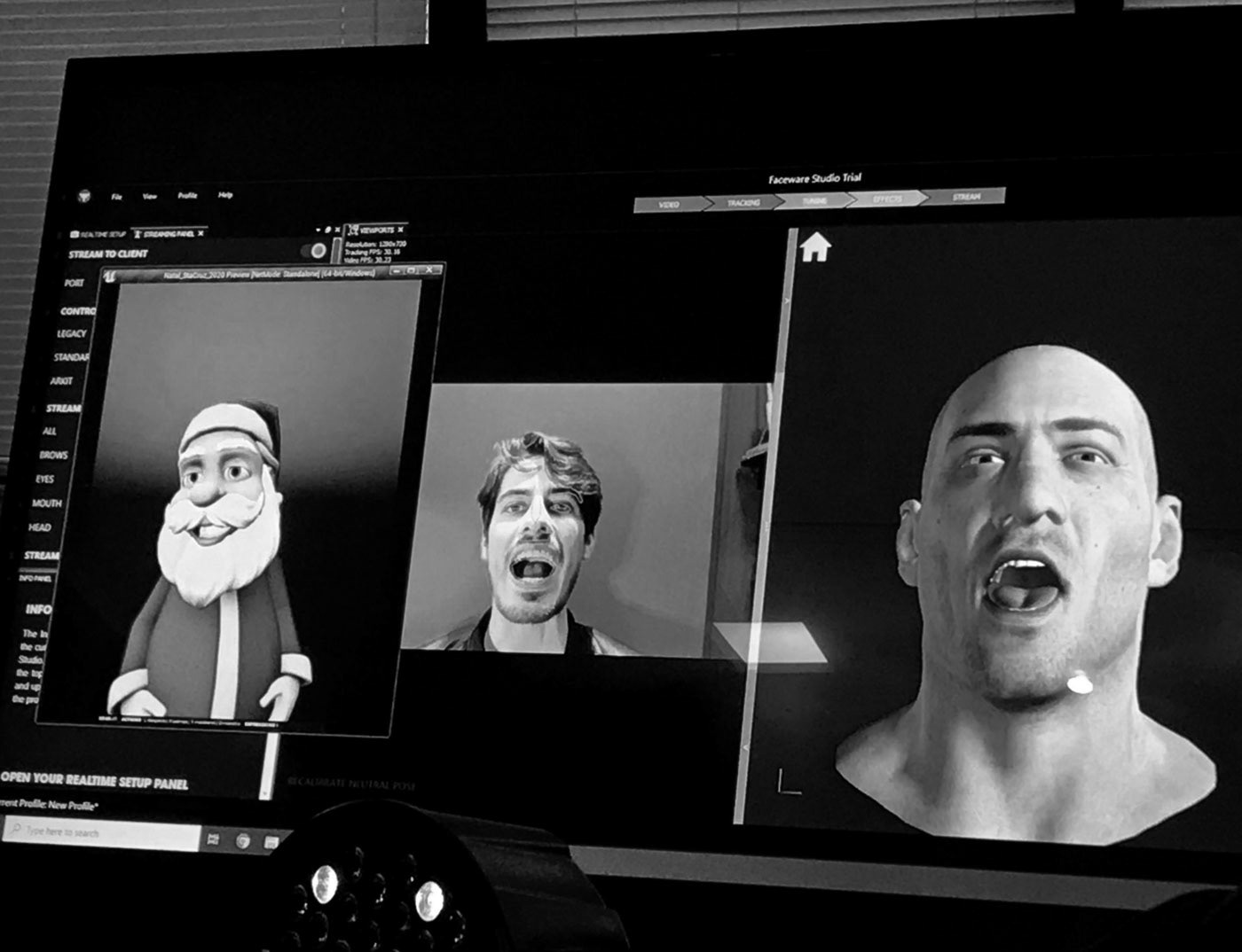 In this all-digital production, children were able to chat with Santa Claus in real time. As guests watched Noel's animation on screen, an actor was backstage guiding the conversation. His face movements were tracked and translated into the character's animation.