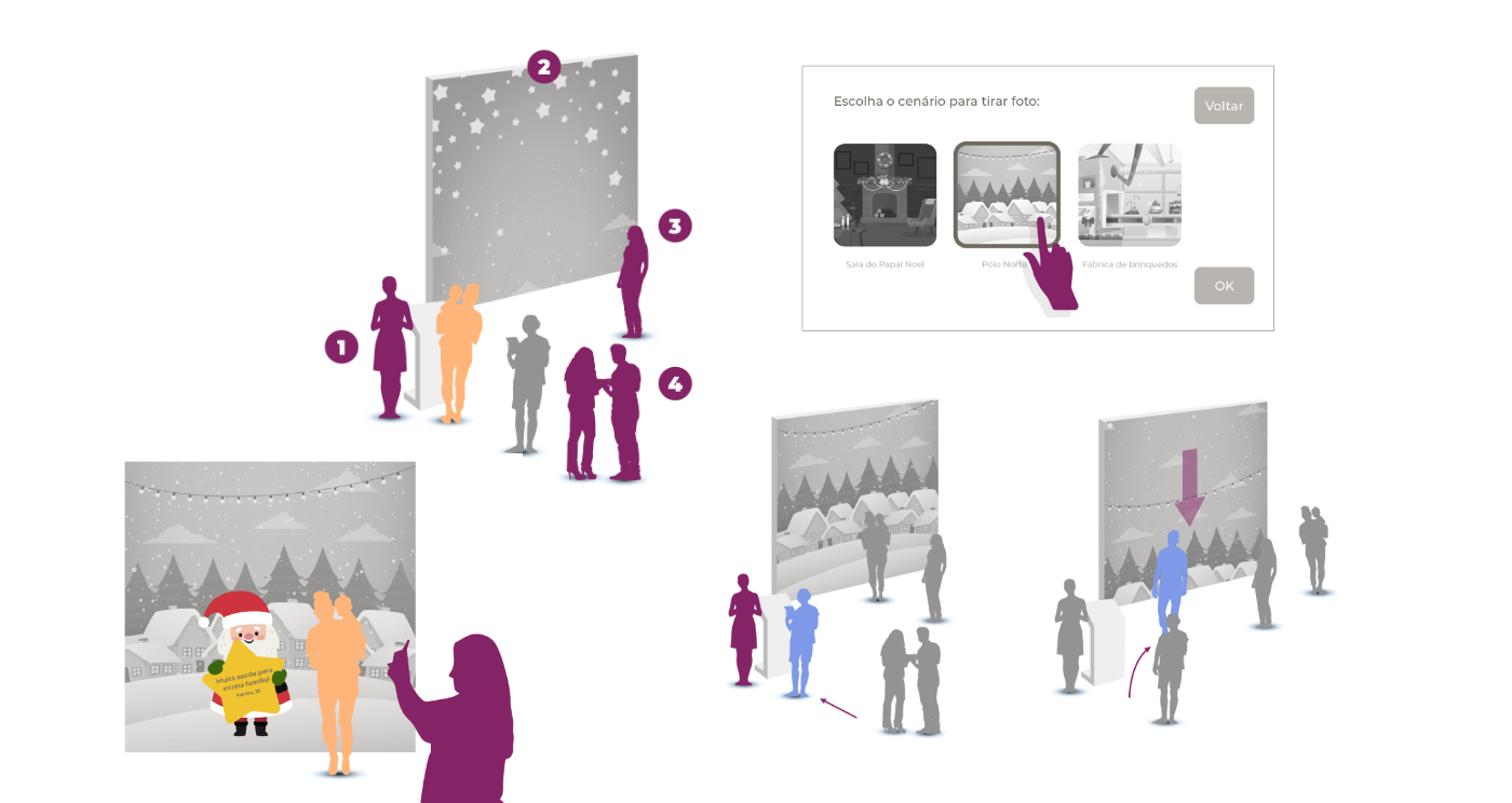 A criança escolhe o cenário em que quer conhecer o Papai Noel e descreve seu sonho de Natal. Ao final da interação, o personagem colocará o sonho dentro de uma estrela, que será posicionada no céu virtual ao lado de todos os outros desejos.